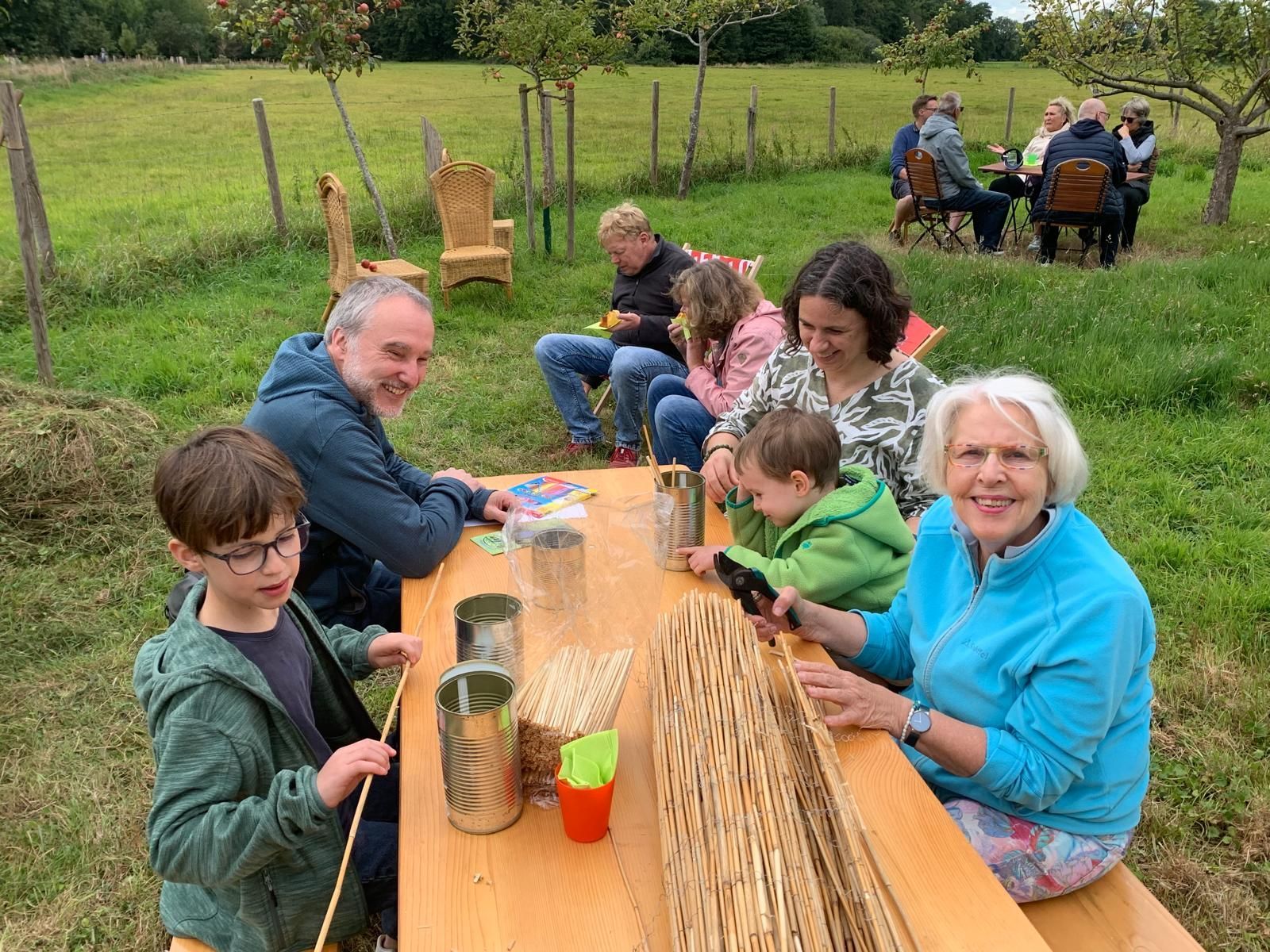 Für die kleinen Gäste wurde ebenfalls einiges geboten: Sie fanden Material vor, mit dem sie das Insektenhotels „möblieren“ konnten und das frisch gemähte Gras bot eine prima Fläche zum Toben.